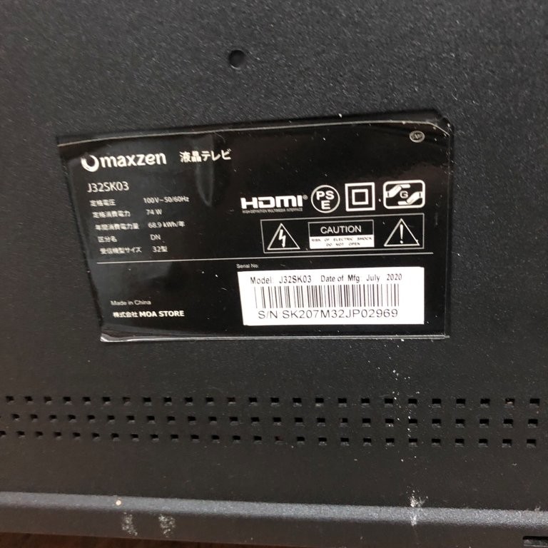 【千葉県野田市】マクスゼン 液晶テレビ J32SK03の回収・処分事例|2020年製 32V型をリユース目的で丁寧に引き取り