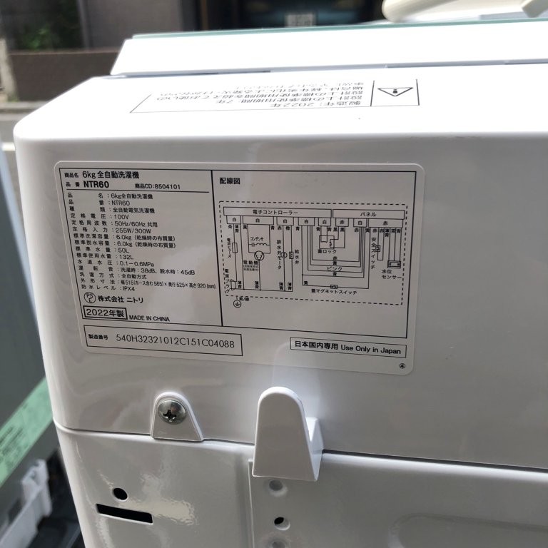 【埼玉県川口市】ニトリ 洗濯機 NTR60 回収・処分事例|洗濯機などの家電品を再利用前提で引き取り