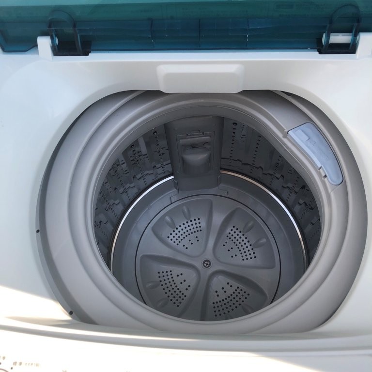 現地で動作確認を行ったところ、洗濯・脱水機能ともに問題なく稼働。槽内も清潔で、外観も目立つ傷や汚れはなく良好な状態でした。