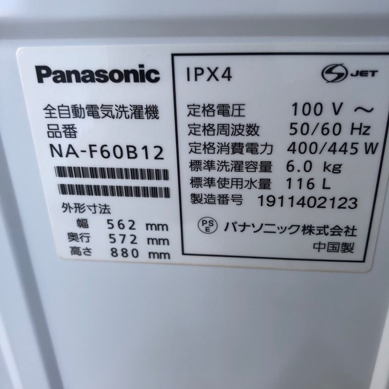 今回三鷹市新川のお客様からご相談いただいたのは、パナソニックの「NA-F60B12」。