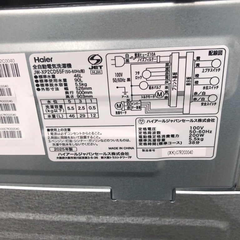という理由から、ハイアール 洗濯機 JW-XP2CD55F(2025年製) の回収をご依頼くださいました。