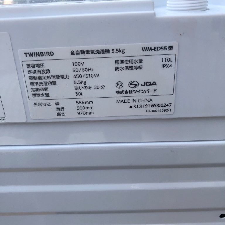 今回は 東京都稲城市 にて、ツインバード 全自動電気洗濯機 WM-ED55(5.5kg) の回収を行いました。