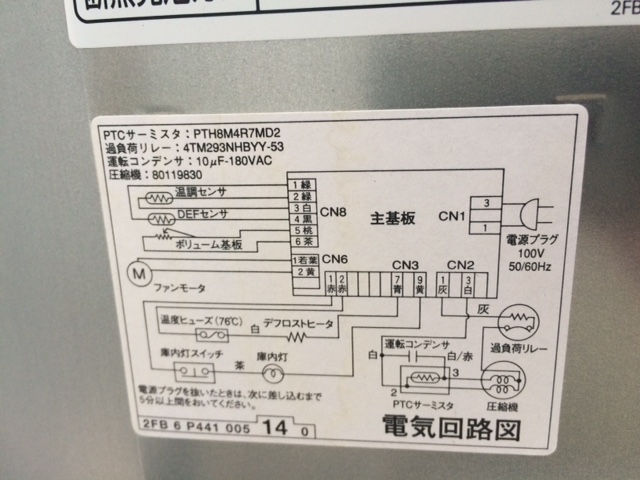 冷蔵庫(SR-141M 2007製)を回収致しました。