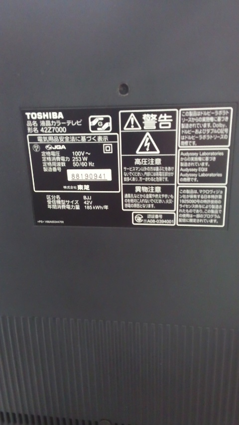 (東芝製レグザ 42Z7000)を回収させて頂きました。